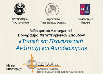 οργανώνουν και λειτουργούν το εξ αποστάσεως Διϊδρυματικό Διατμηματικό Πρόγραμμα Μεταπτυχιακών Σπουδών (ΔΔΠΜΣ) «Τοπική και Περιφερειακή Ανάπτυξη και Αυτοδιοίκηση»
